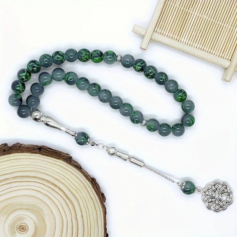 مسبحة 33 حبة من الزجاج الأخضر اللامع